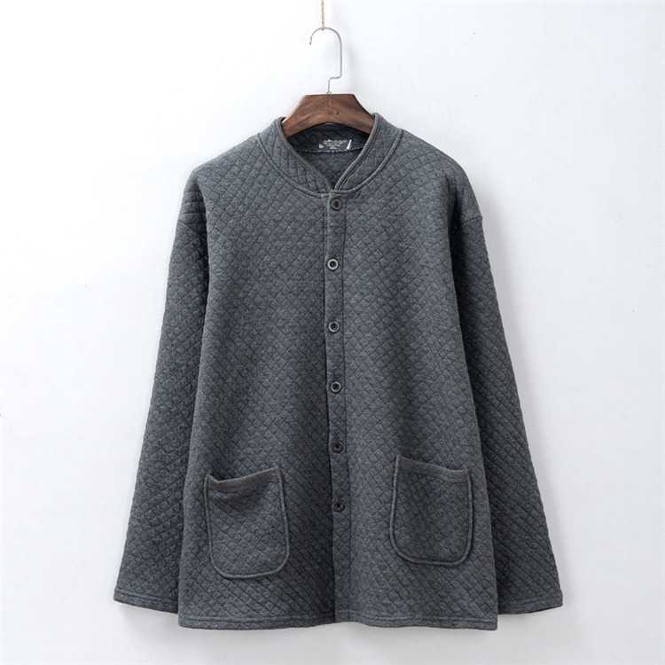 Autumn and winter new middle-aged and elderly men and women three-layer cotton warm home clothing men and women quilted long-sleeved pajamas cardigan