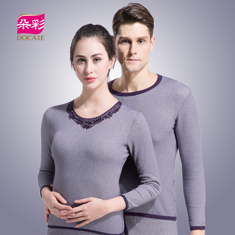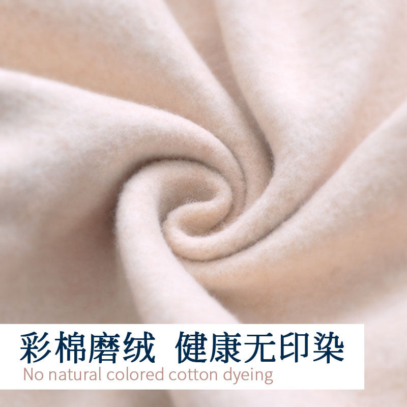 Duocai natural colored cotton pure cotton plus velvet thickened thermal underwear set men and women youth long-sleeved bottoming autumn and winter