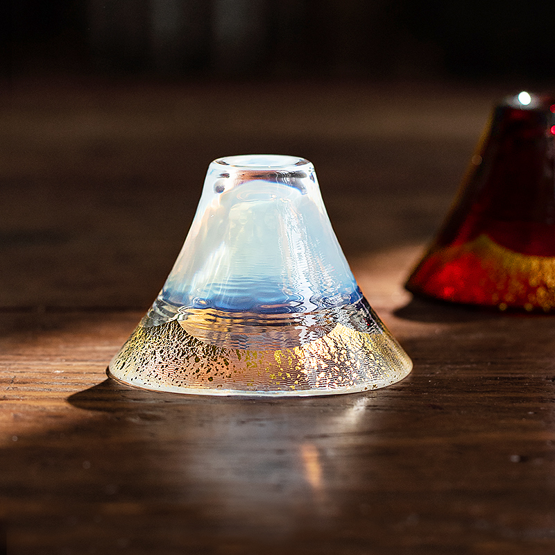 Toyo Sasaki Japan imported Mt. Fuji gold leaf glass pair wedding toast tea cup wedding gift set