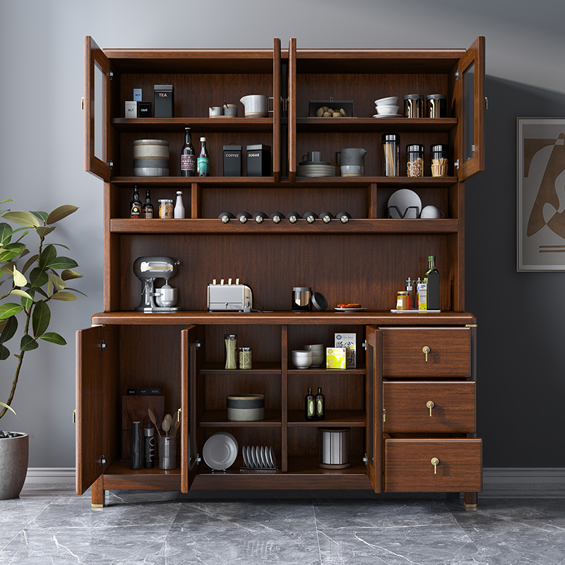 New Chinese style solid wood sideboard walnut cupboard cabinet wine cabinet kitchen cabinet locker tea cabinet locker