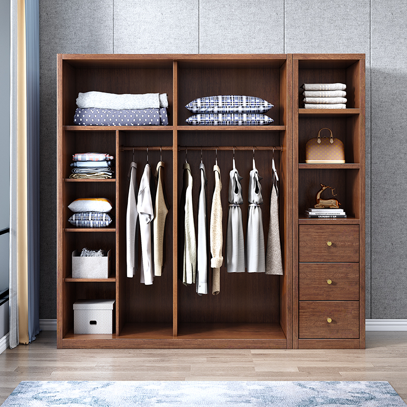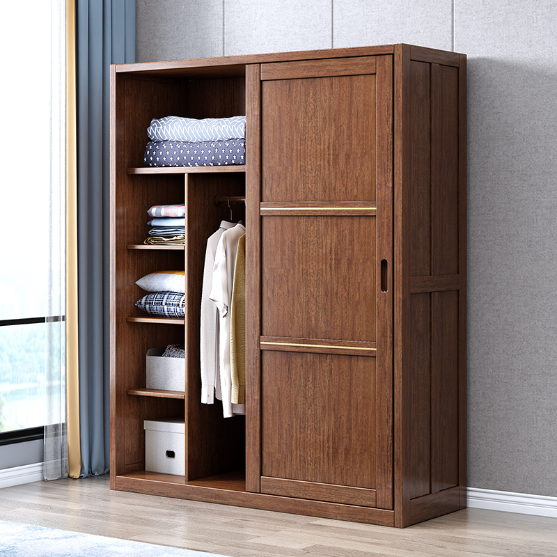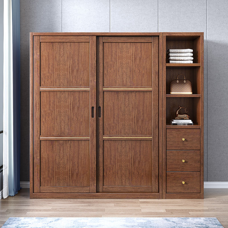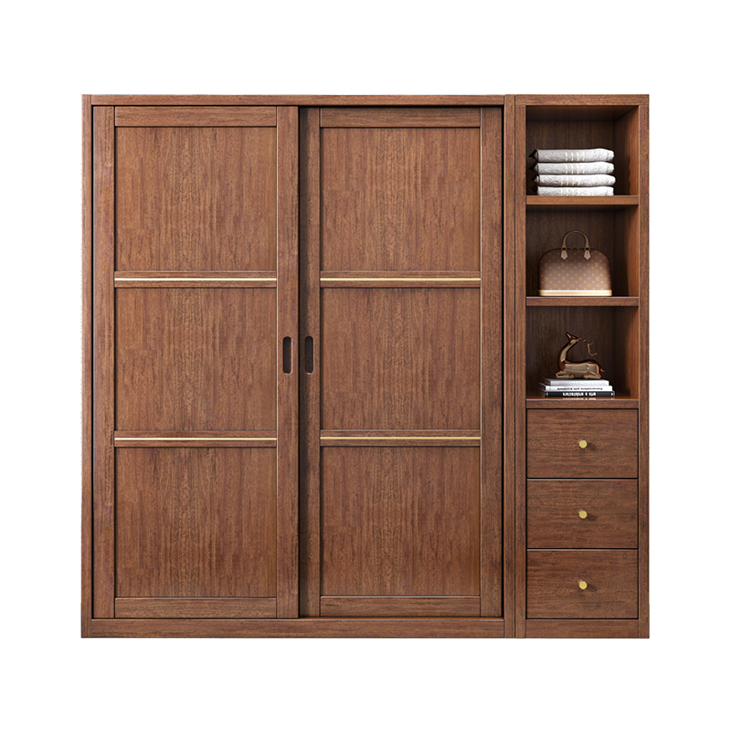 New Chinese style solid wood sliding door wardrobe walnut sliding door home bedroom wardrobe modern minimalist large storage cabinet