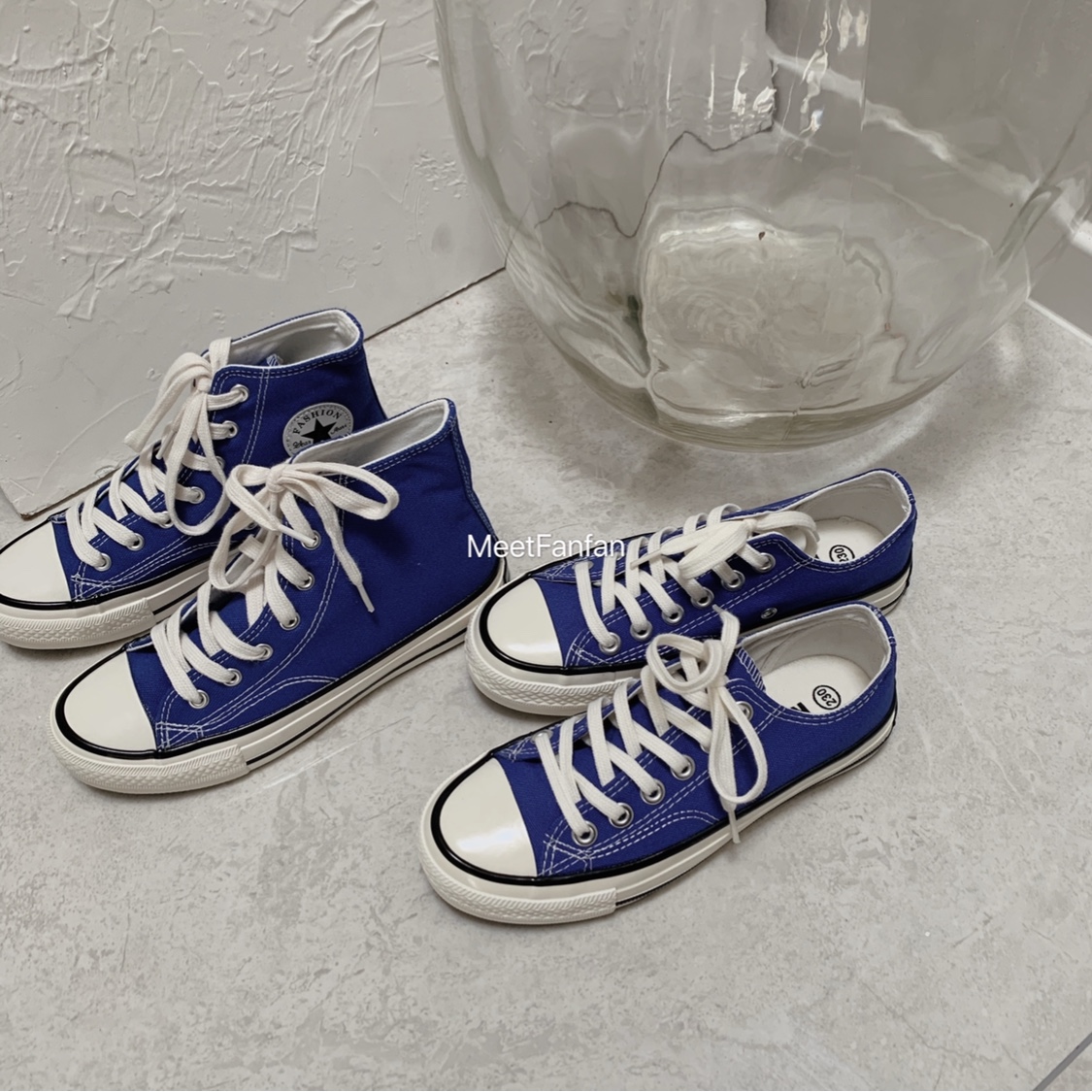 Color is absolutely ~ autumn and winter college STAR blue lake water army blue 1970s bright blue canvas shoes men and women couple shoes