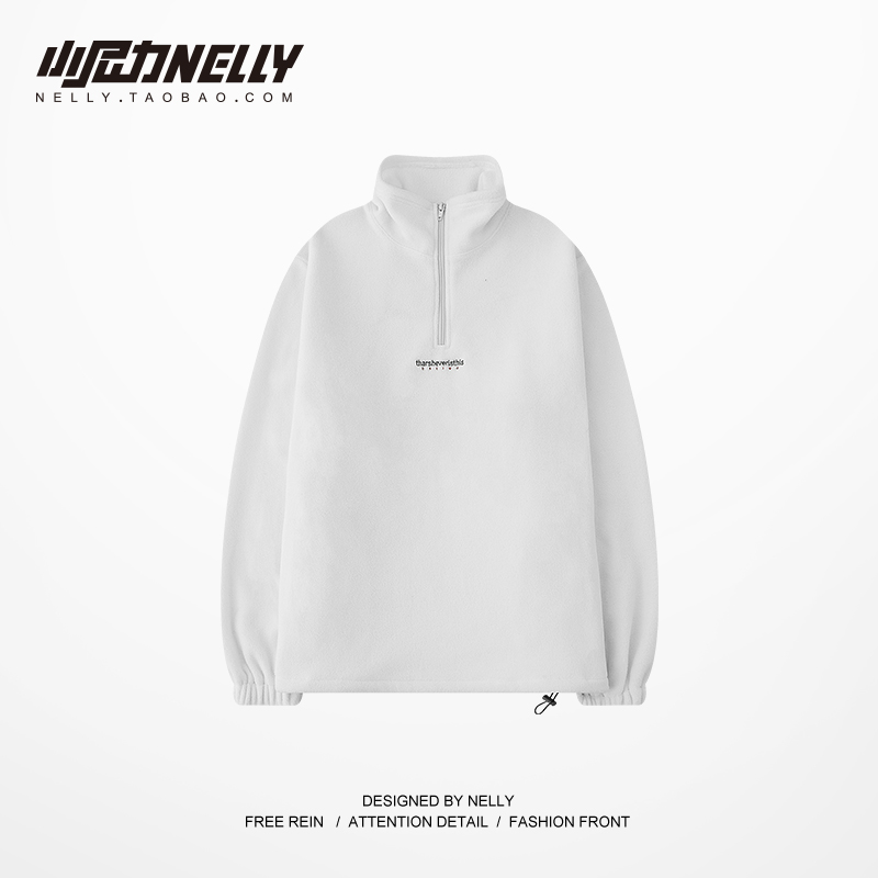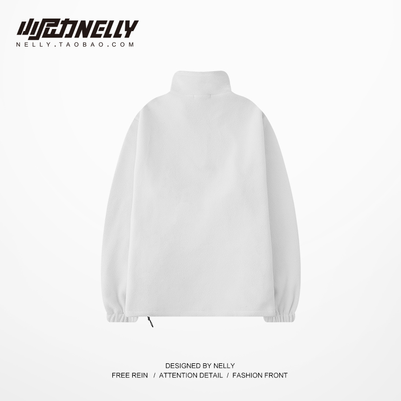 South Korean hip hop autumn winter tooling wind semi-high neckline polo shirt BF wind medium long version loose wool jacket male and female
