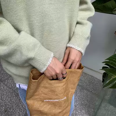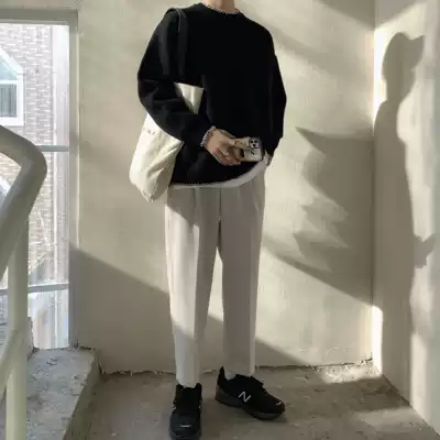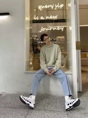 Value clearance# Car stitching simple black light green sweater men's autumn and winter round neck knitwear Korean trend INS