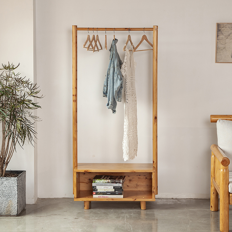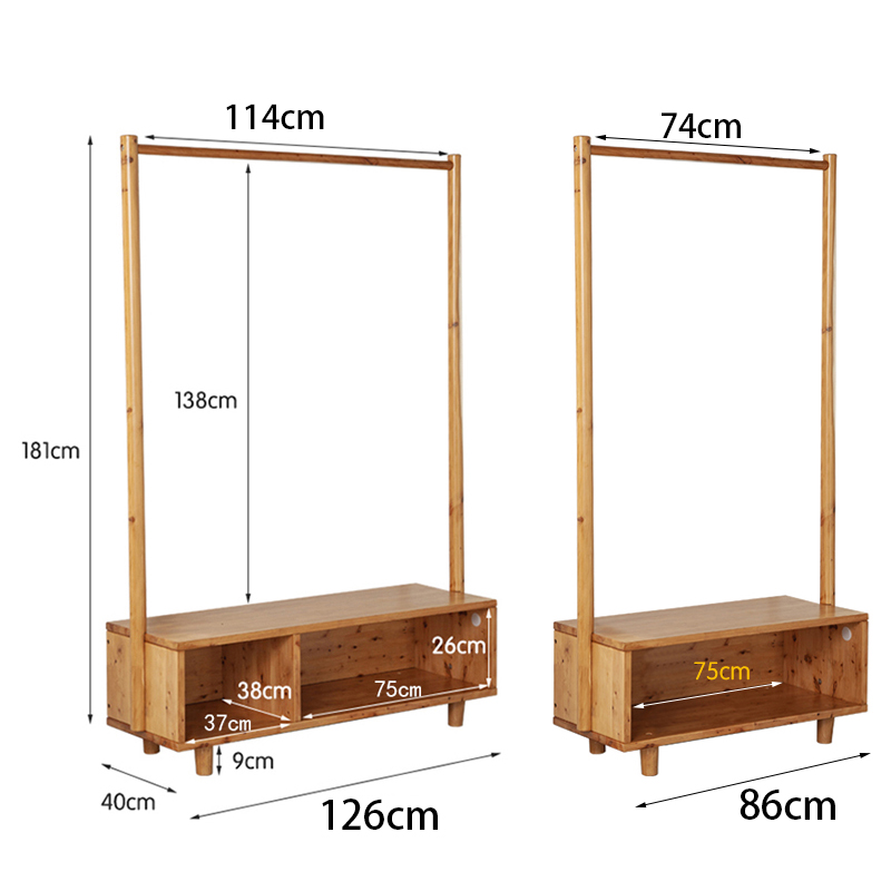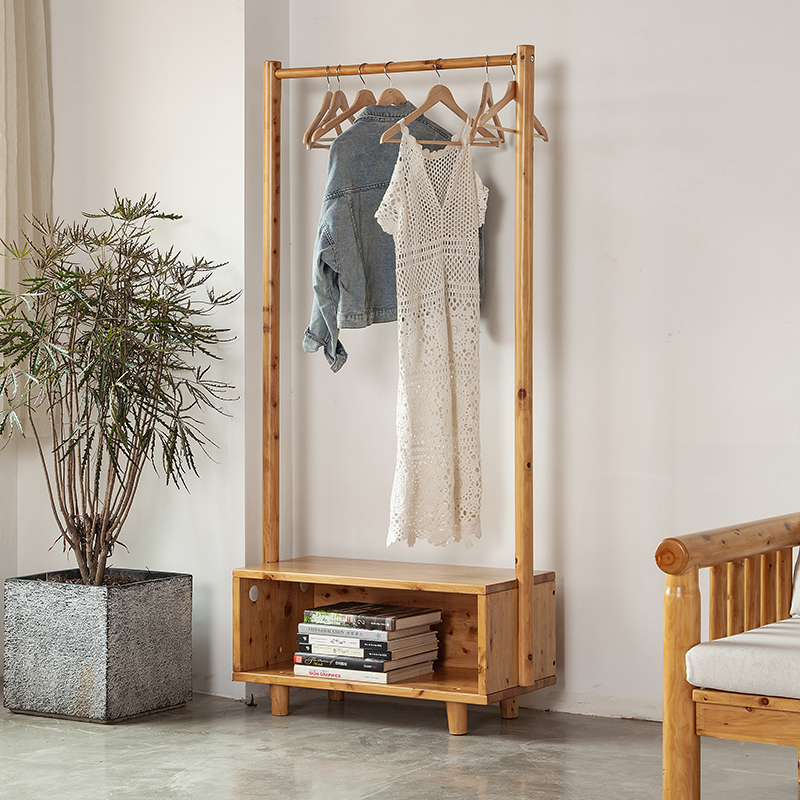 Full solid wood minimalist floor clothes hat rack Japanese style hanging hanger son home shelve Berwood for shoes and stool for people's furniture