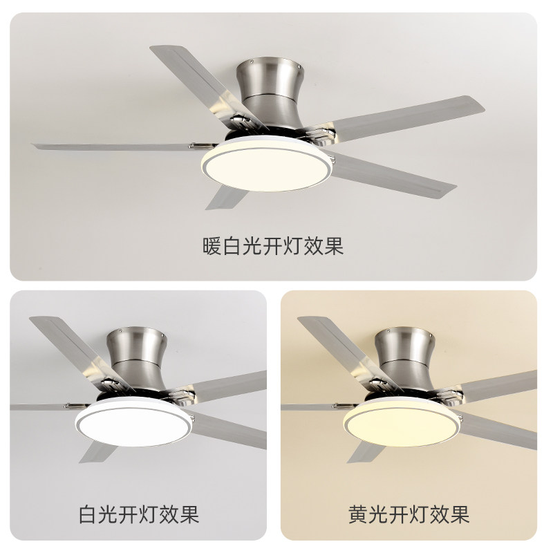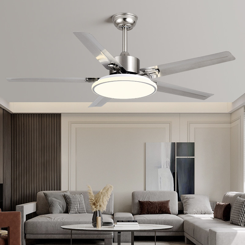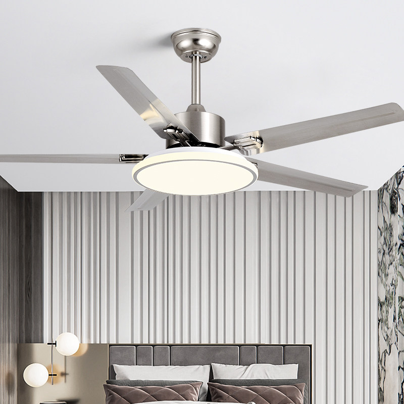 Modern minimalist industrial fan light Home Living room Dining Room Dining Room Stainless Steel Frequency Conversion Ceiling Fan Lamp Large Wind Fan Chandelia
