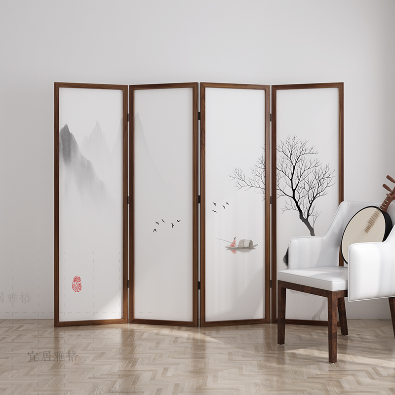 Solid wood screen partition Living room Chinese bedroom Bedroom Shelter Home Office Custom Landscape Ancient Wind Mobile Folding Fold