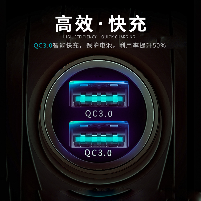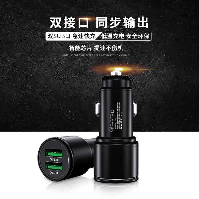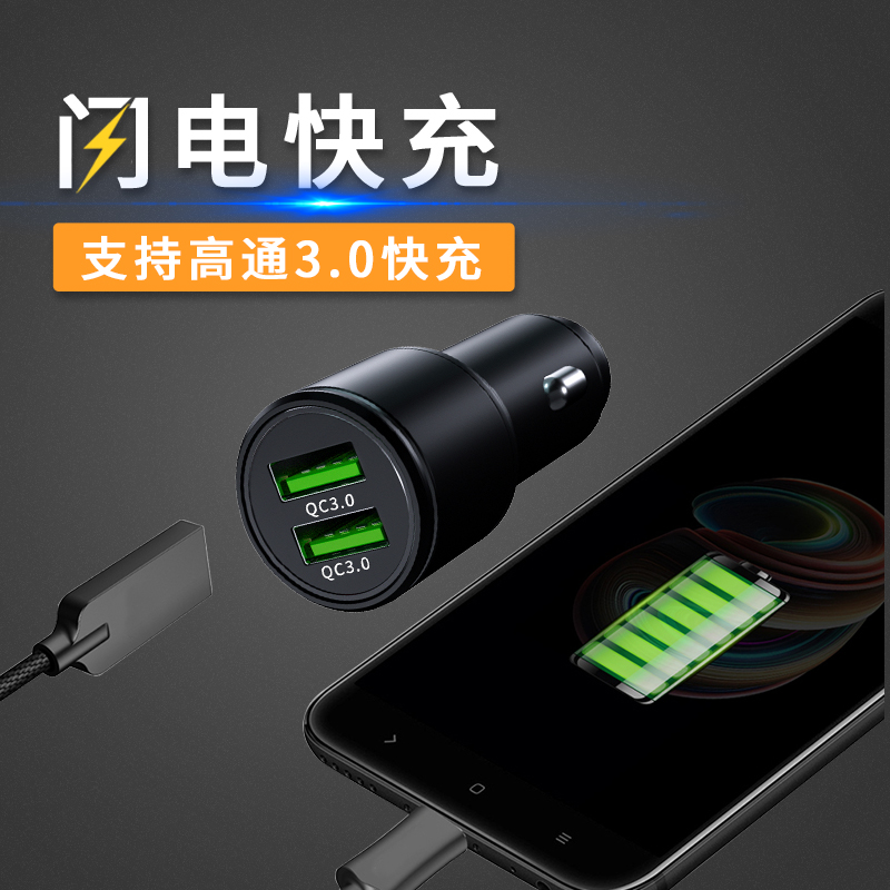 Car mobile phone charger QC3 0 fast charge car charger one drag two car cigarette lighter dual port USB fast charge universal