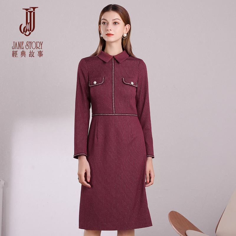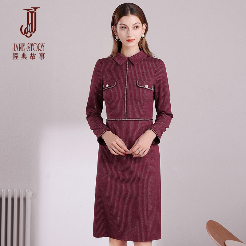Classic Story 2022 Spring new fashion Flipped Collar slim fit A long version Long sleeves striped Ocean dress
