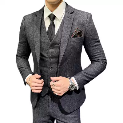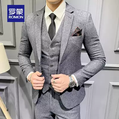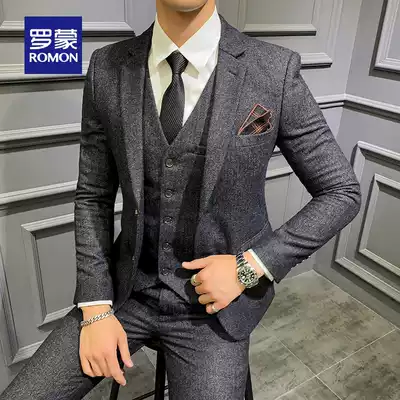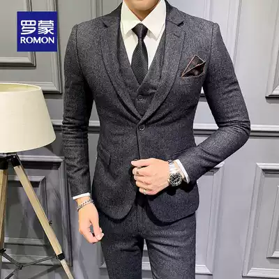 Romon wool suit suit men autumn and winter slim business gentleman suit groom wedding dress three-piece set