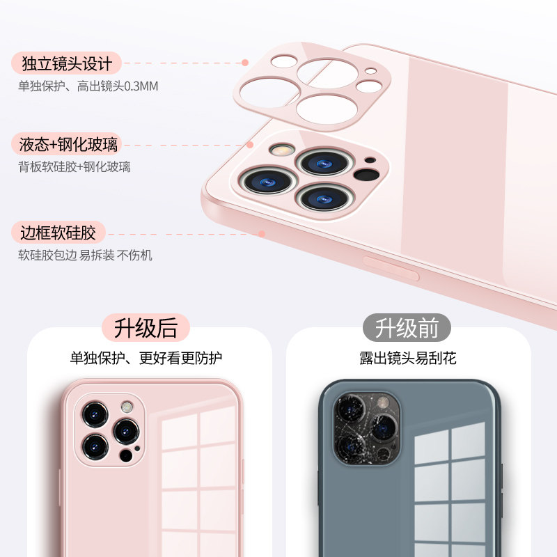 Apple 12 mobile phone protective case iPhone12promax transparent silicone 12pro anti-fall ultra-thin protective case 12mini tempered glass case por camera all-inclusive lens