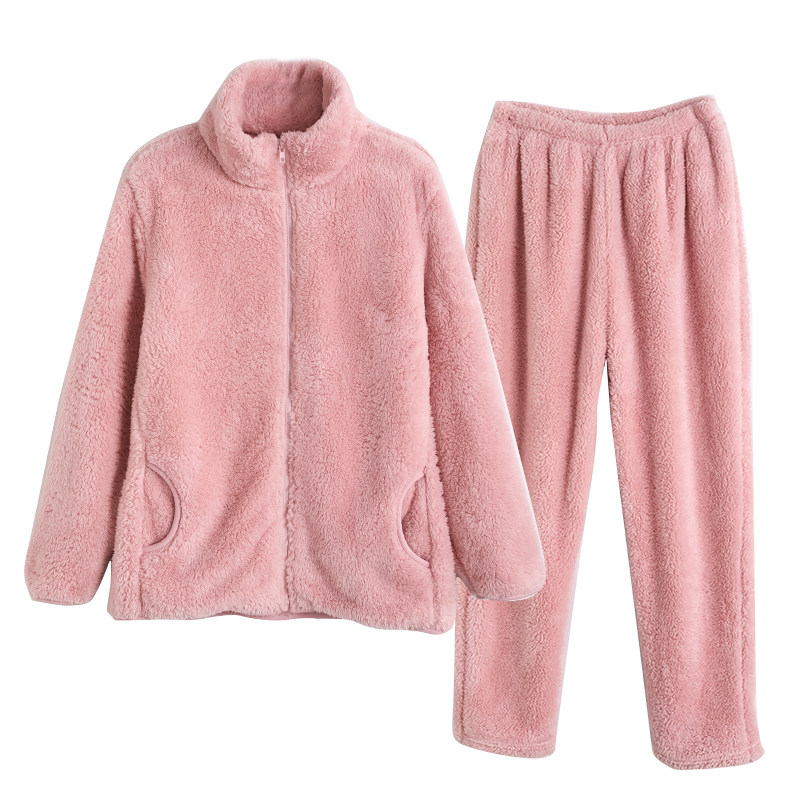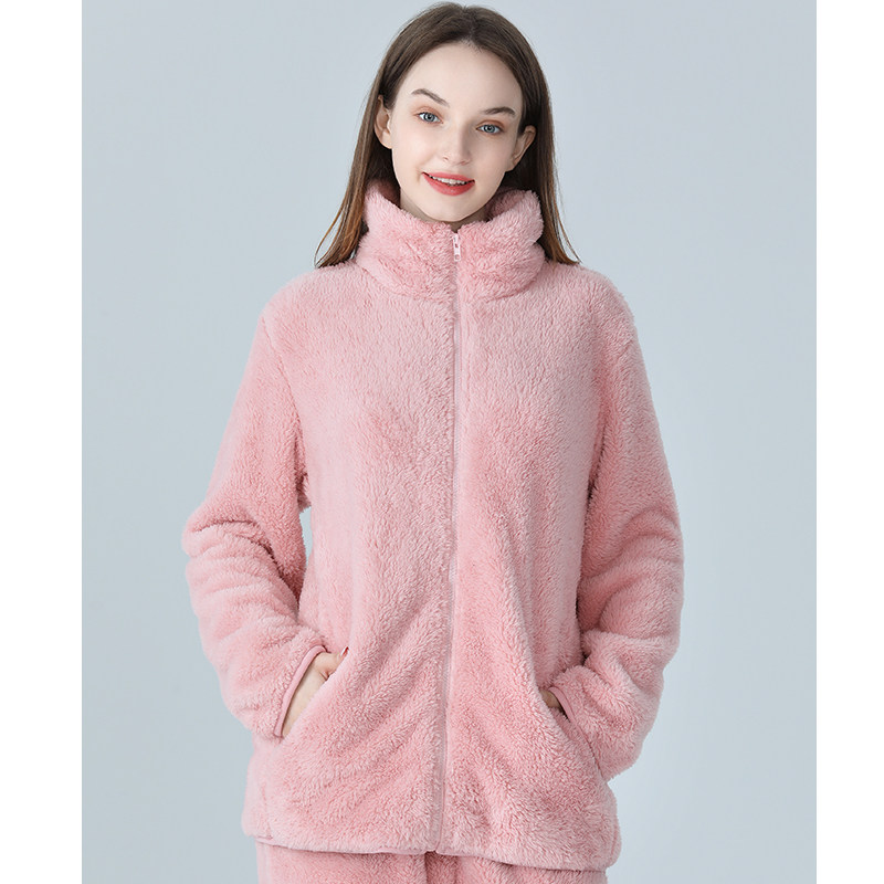 IIZZINI Couple Sleepwear Women's Winter Long Sleeves Thickened Coral Suede Warm Flannel Suede High Collar Home Suit Men
