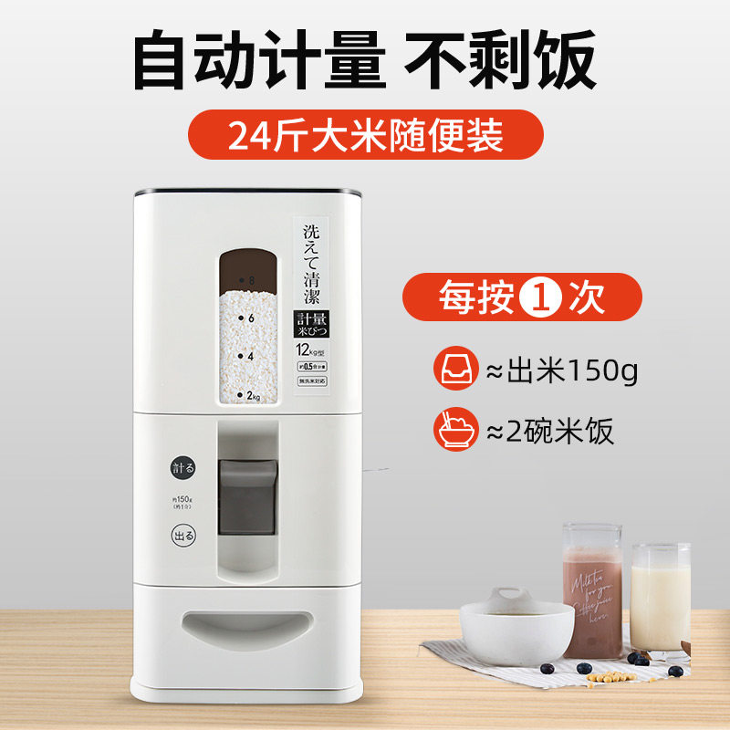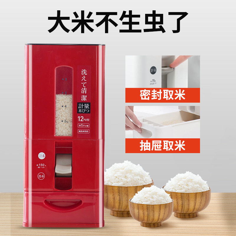 Metering rice barrel Japanese household insect-proof moisture-proof sealed rice storage box rice storage box 20 pounds loaded automatic rice cylinder