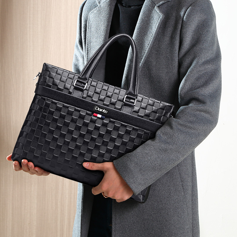 New men's leather business briefcase horizontal casual men's handbag cowhide Korean shoulder messenger bag
