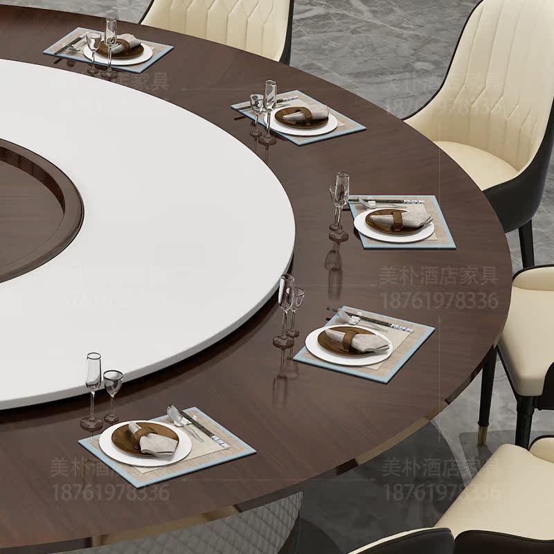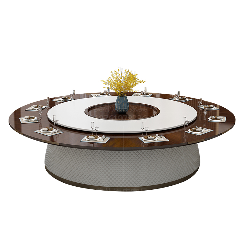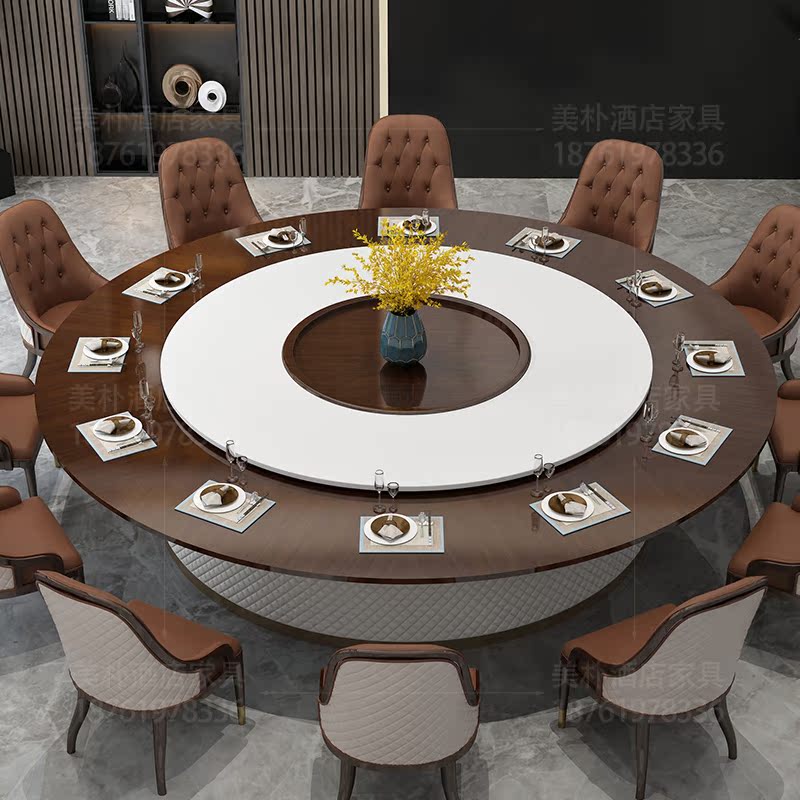 High-end light luxury five-star hotel electric dining table Large round table Club New Chinese solid wood modern hot pot seafood building