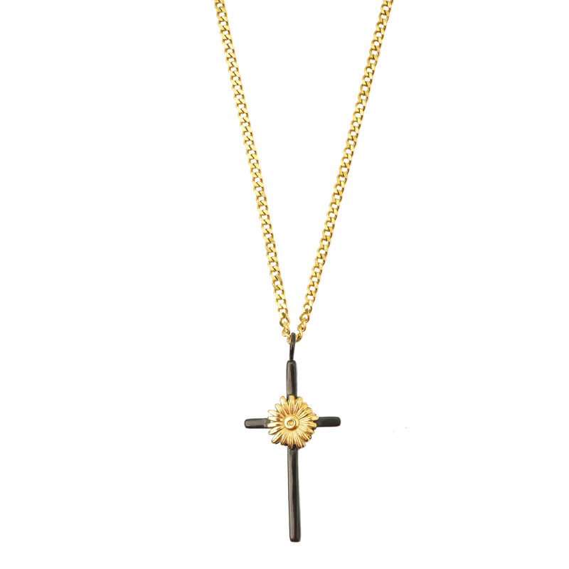 ROADLATIVE Original design State Tide Accessories Titanium Steel Black Gold Chrysanthemum Cross Pendant Lovers Necklace