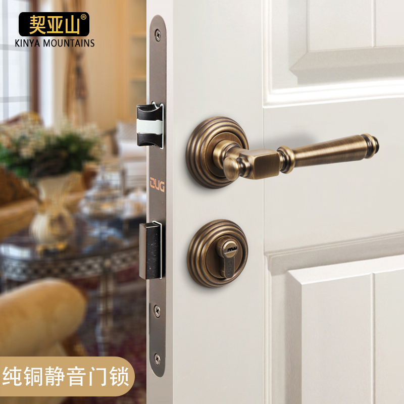 Chia Mountain full copper mute feel comfortable Loft modern minimalist indoor house door American primary-secondary two-piece door lock