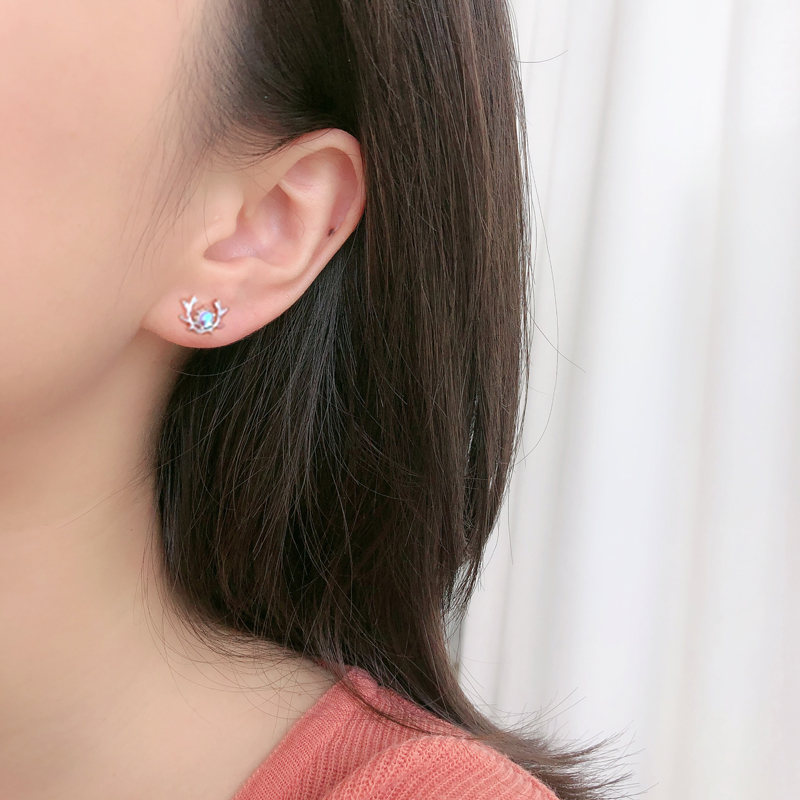 S925 Moon Rock Rock Horn Ear Nail (one pair)