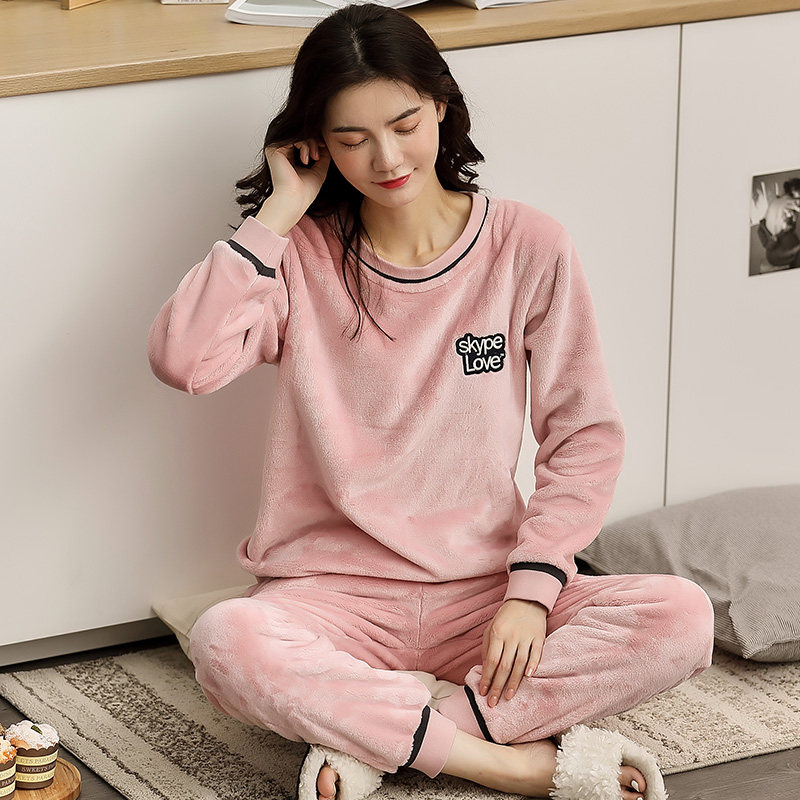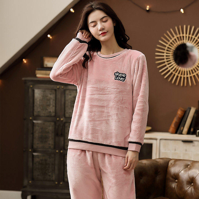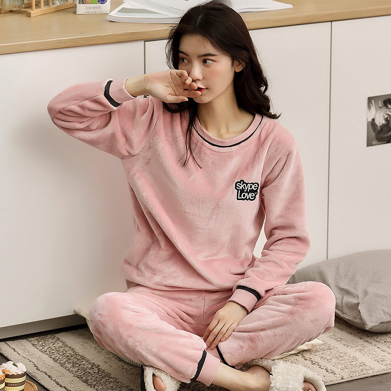 Large size 200 pounds of women's coral velvet pajamas Autumn and winter women's velvet thickened winter flannel home clothes set sy