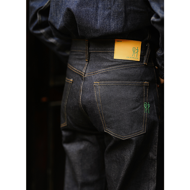God of Wealth New Year Pictures Series Official Ring Spinning MBBCAR Narrow Red Ear Denim Standard Straight Jeans