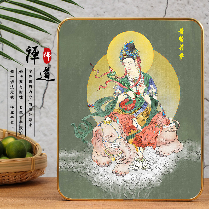 Customized Puxian Bodhisattva portrait Buddha statue hanging painting Puxian Bodhisattva desk rounded Phnom Penh table HD knot