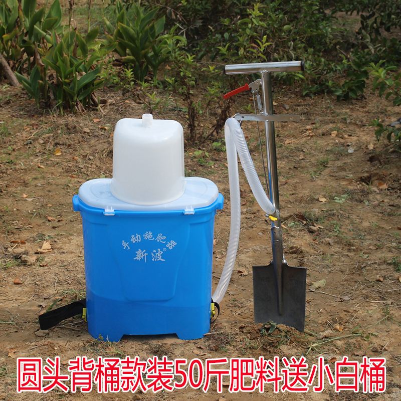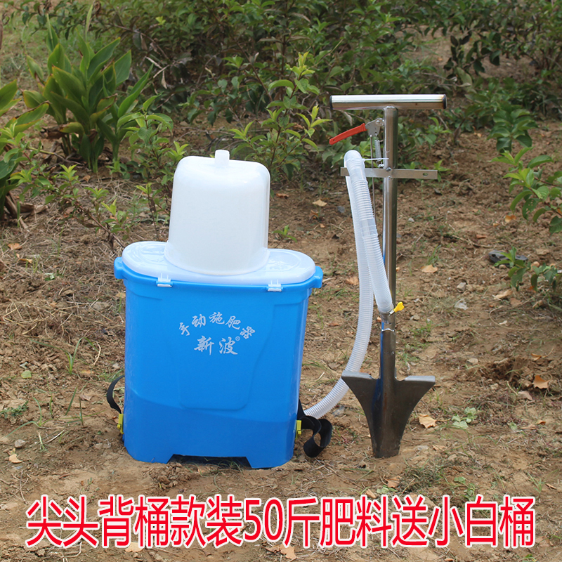 Pointed shovel tip small white bucket fertilizer applicator Tip-toe backpack fertilizer applicator Pointed back bucket type fertilizer applicator