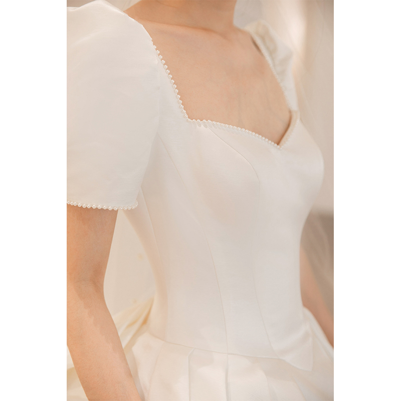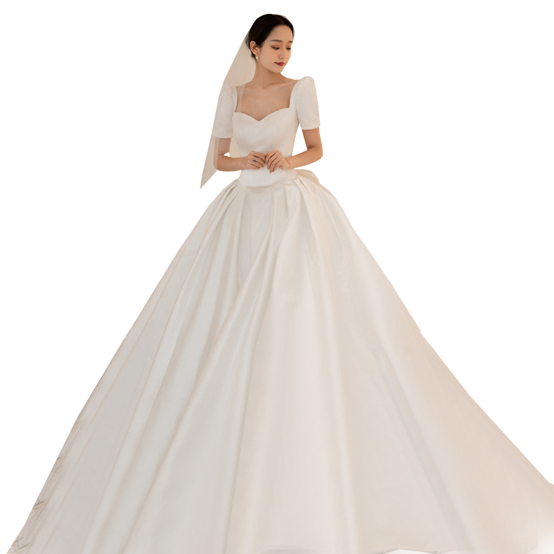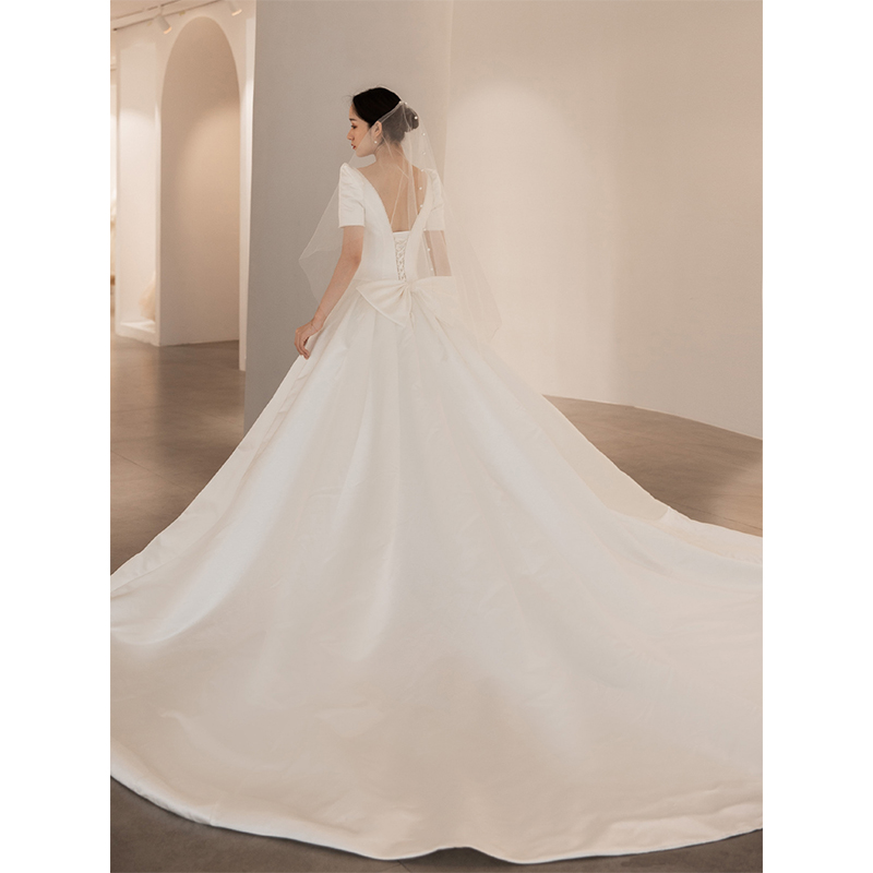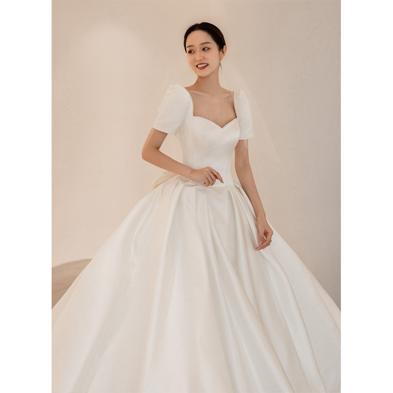 Wedding dress 2022 new bride main wedding dress simple high-end satin French temperament bride going out yarn trailing winter