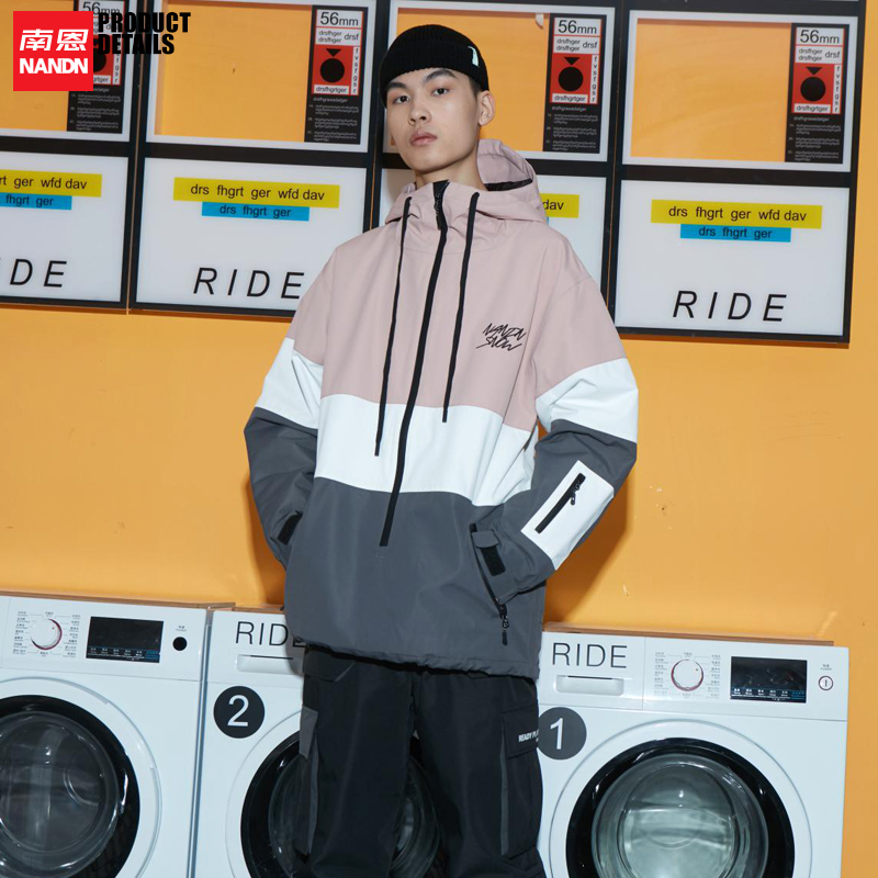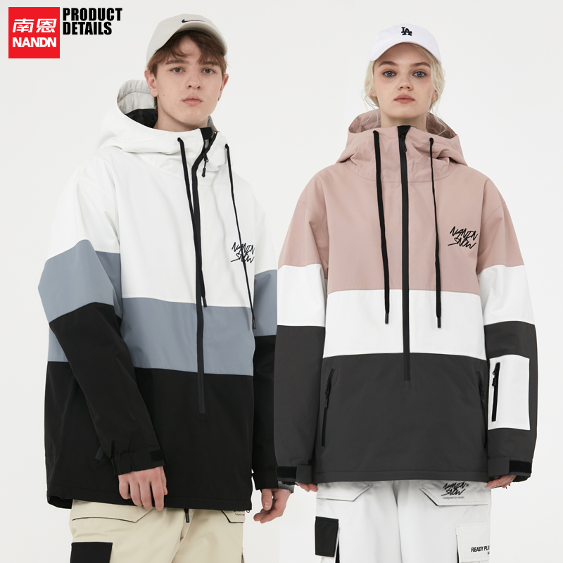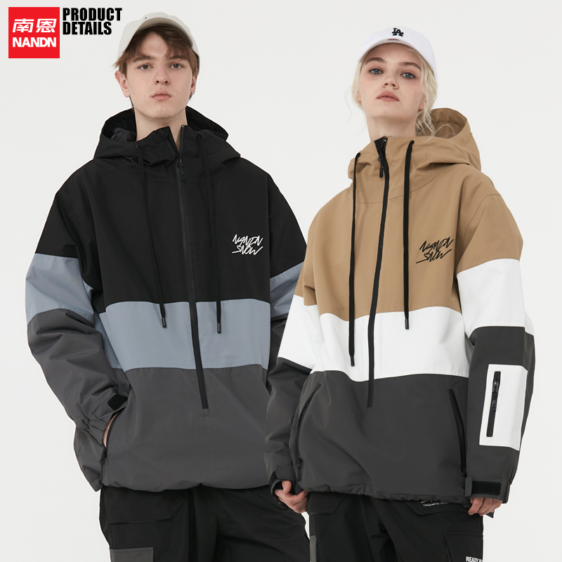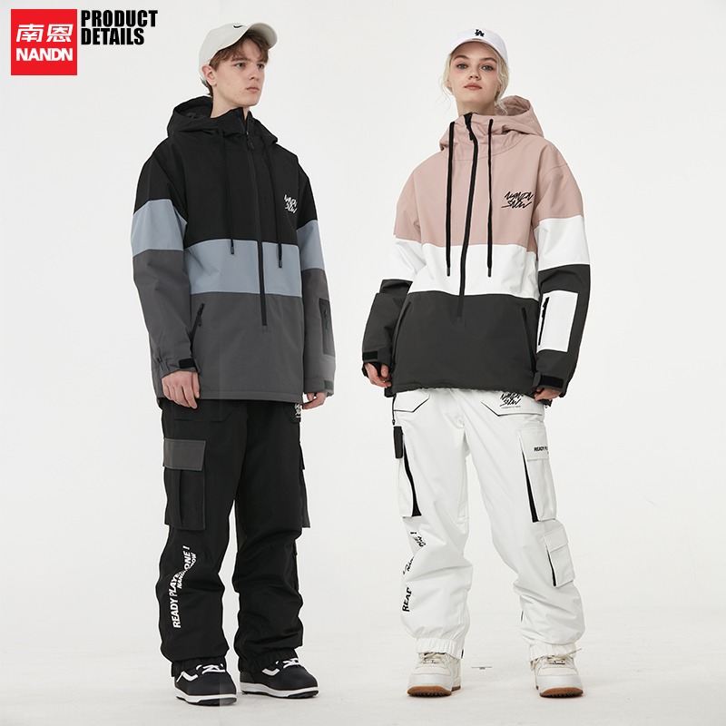 Nanen 21 new snowboard jacket headgear trend splicing couple Waterproof warm ski suit pants for men and women
