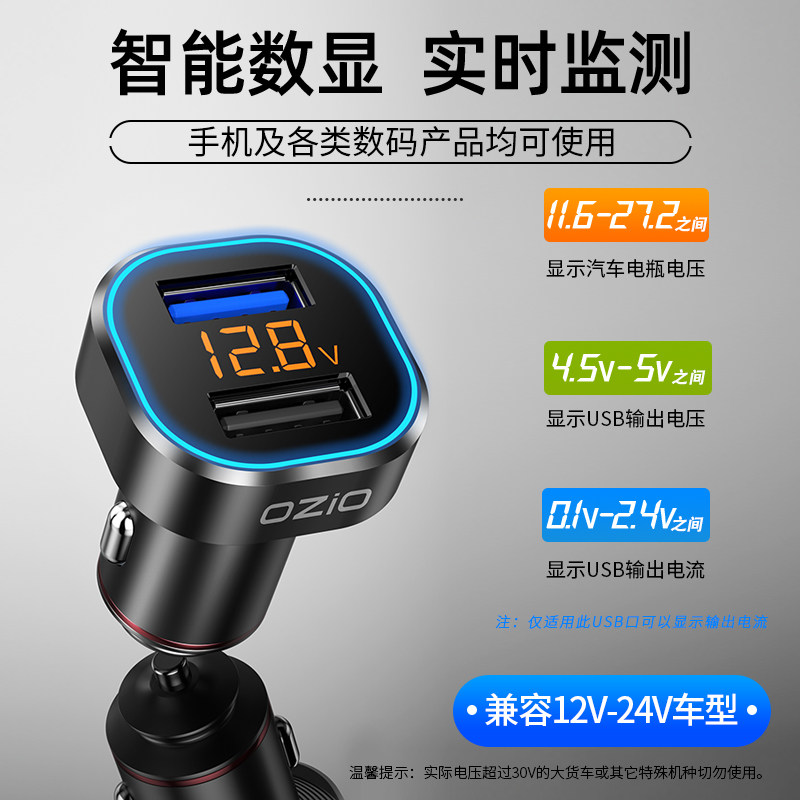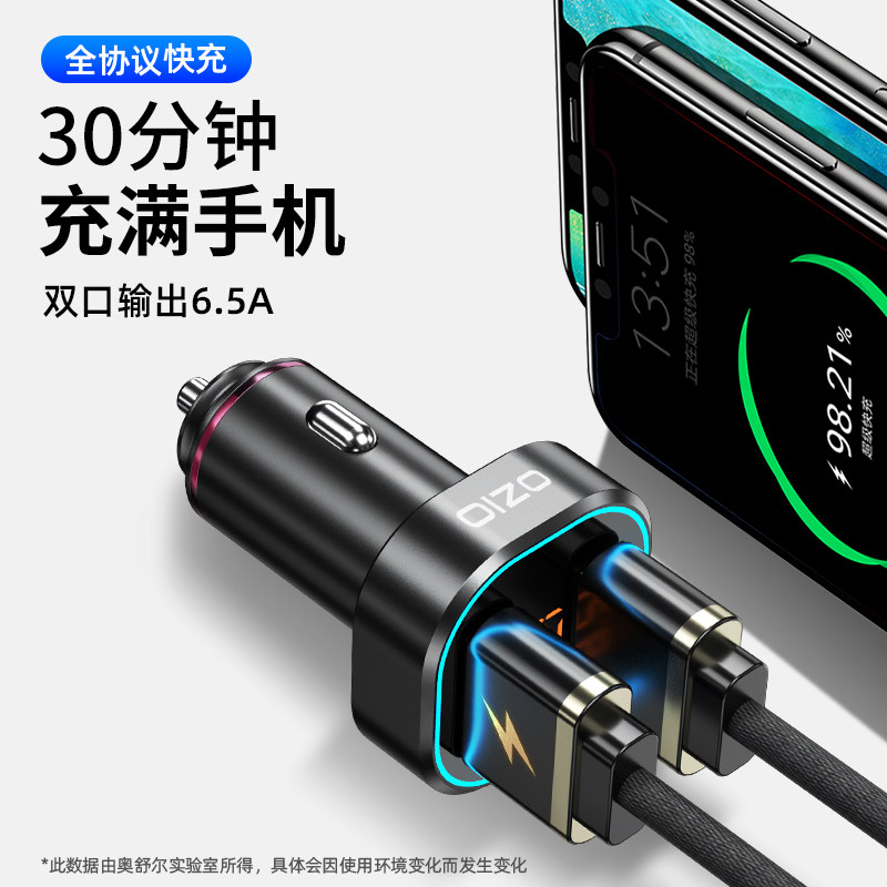 Oshul on-board charger mobile phone fast charging cigarette lighter one-drag two conversion plug car usb fast flash