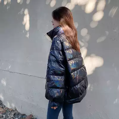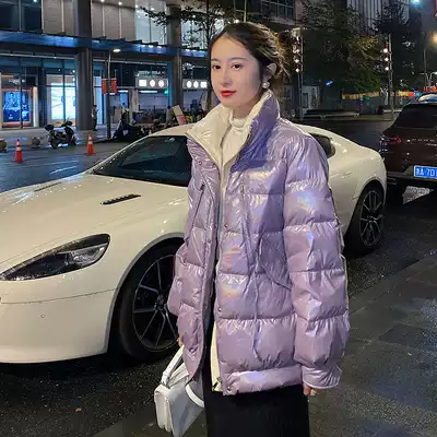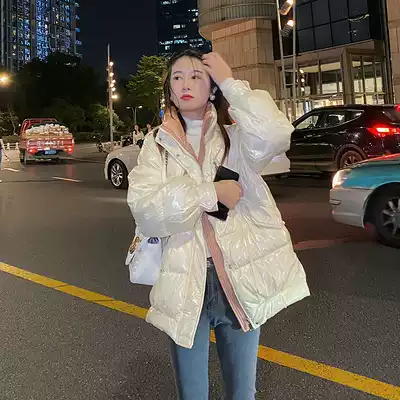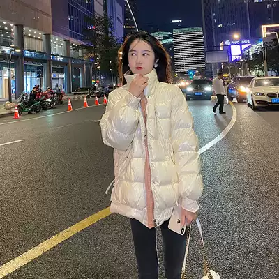 Concubine white bright face down jacket female collar 2021 new disposable Korean fashion loose light and thin short tide