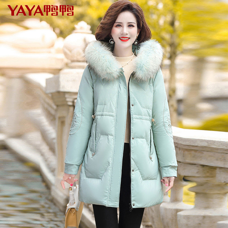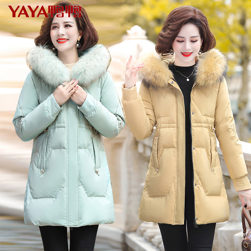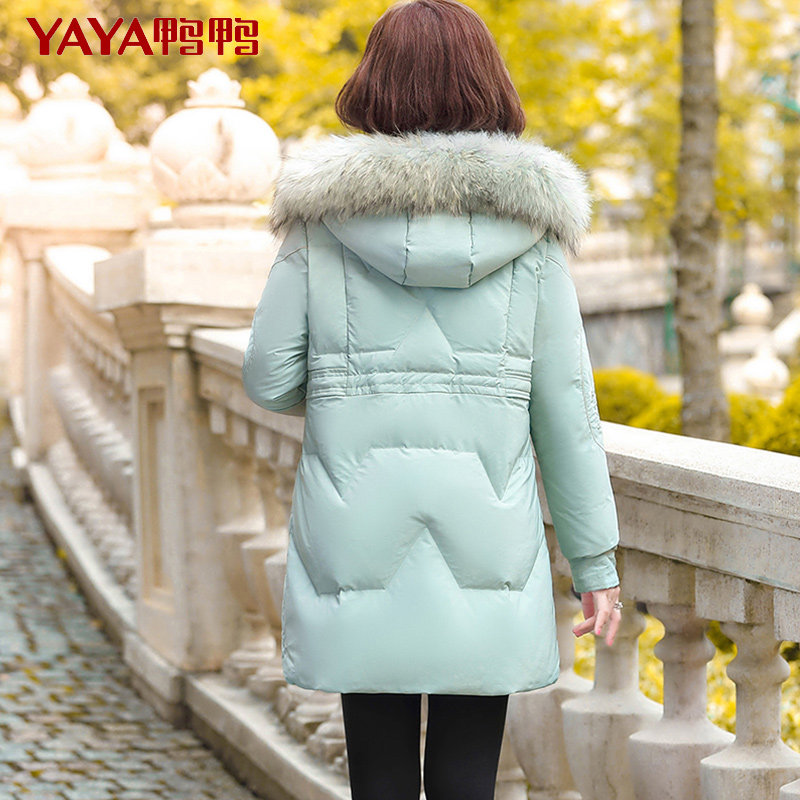 Duck Duck Down Clothes 2020 New Women's Medium Long Version True Raccoon Fur Collar Slim Fit Young Mom Dress XB