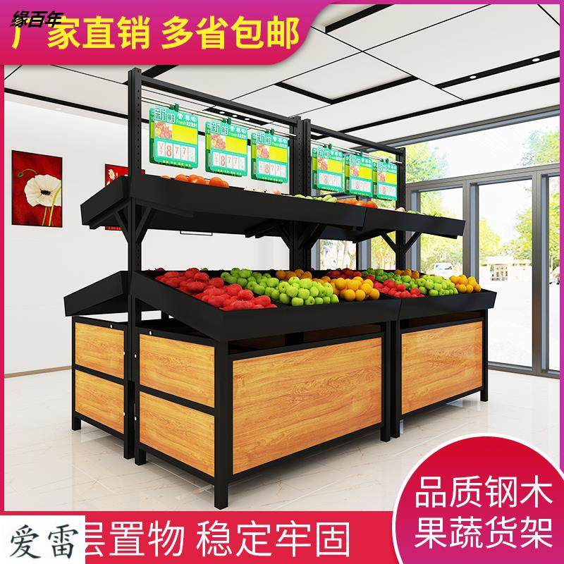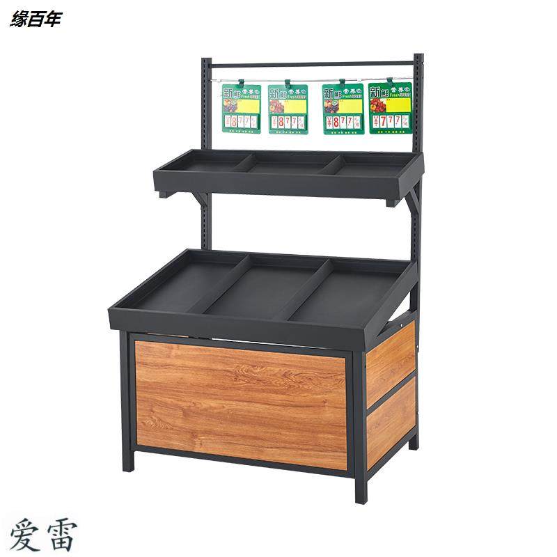 Supermarket vegetable rack vegetable rack fruit display steel and wood commercial storage double-layer multifunctional fresh shop fruit and vegetable rack