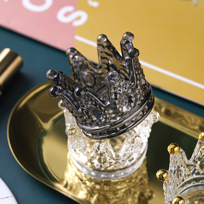Crystal glass crown powder puff drying bracket ring holder jewelry rack ins wind beauty egg storage layer shelf ornaments