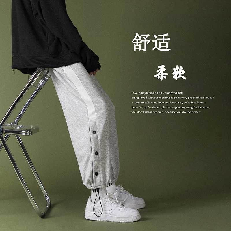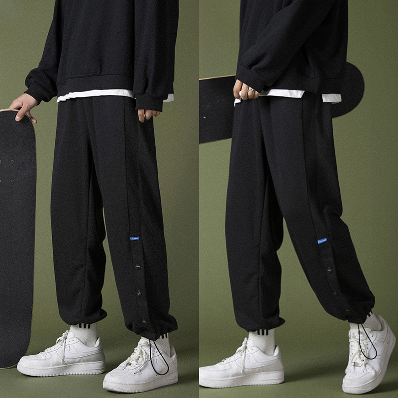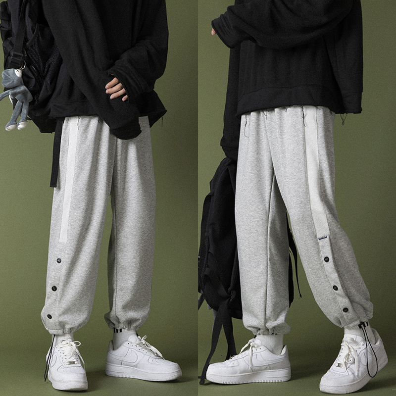 Car label stickers breasted pants men's tide brand all-match ins large size loose casual trousers drawstring foot sports thick cotton pants men