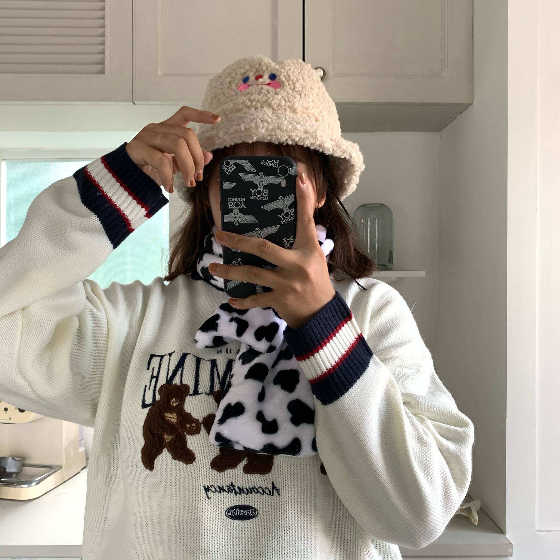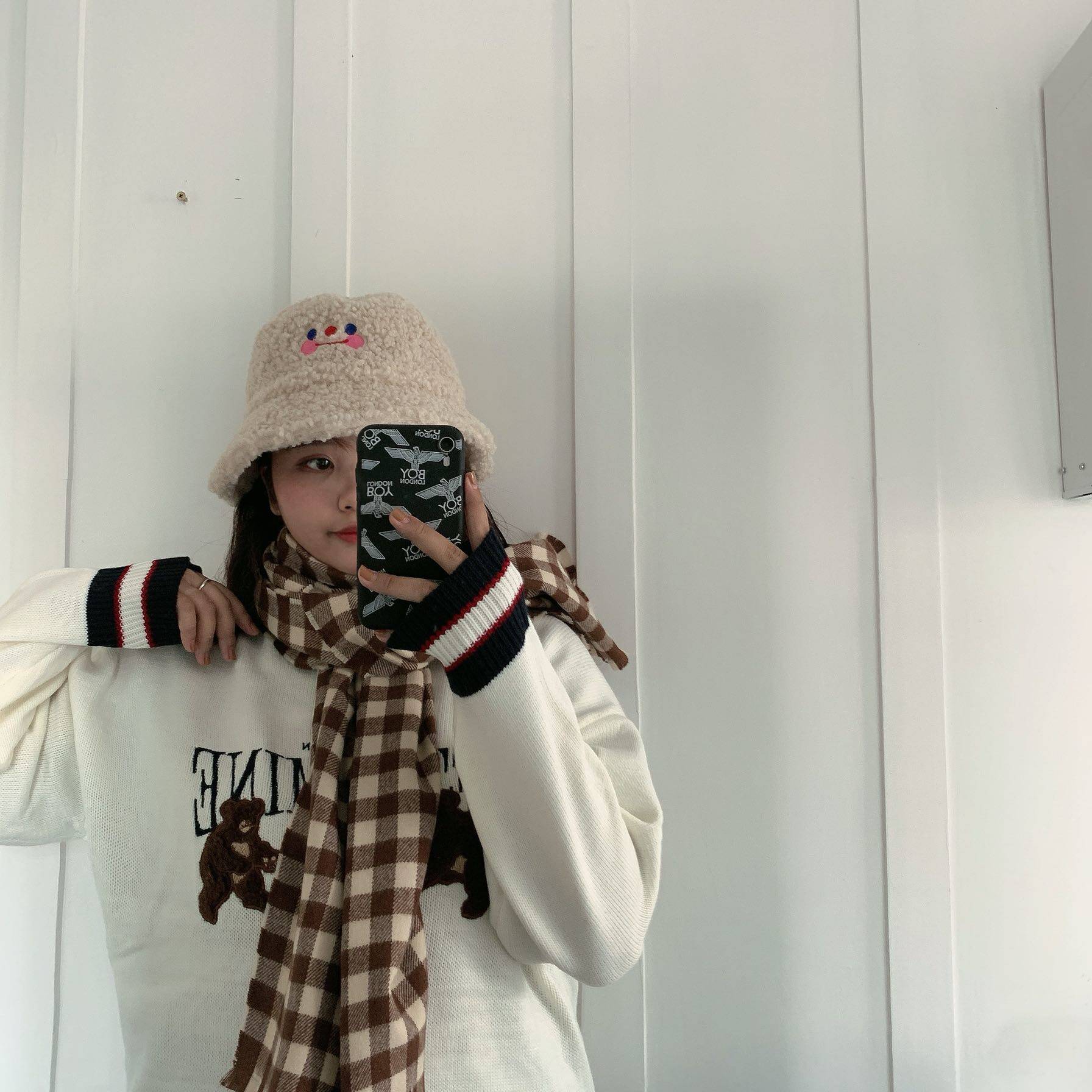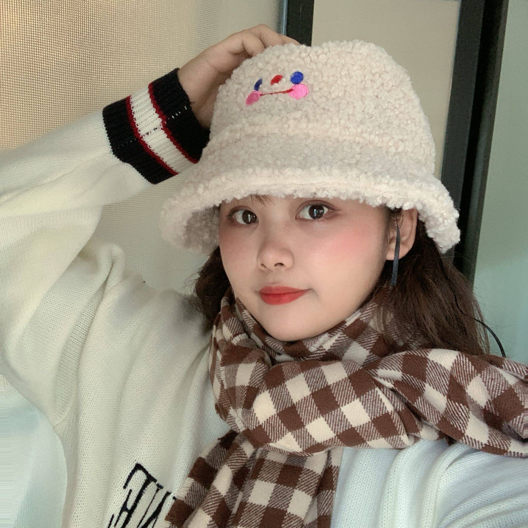 Luna girl homemade ins khaki cloud smiley fisherman hat plush girl warm hat