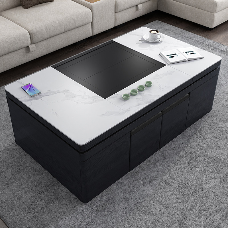 Smart rock plate coffee table Multi-function electric lift coffee table TV cabinet combination modern with induction cooker Gongfu tea table