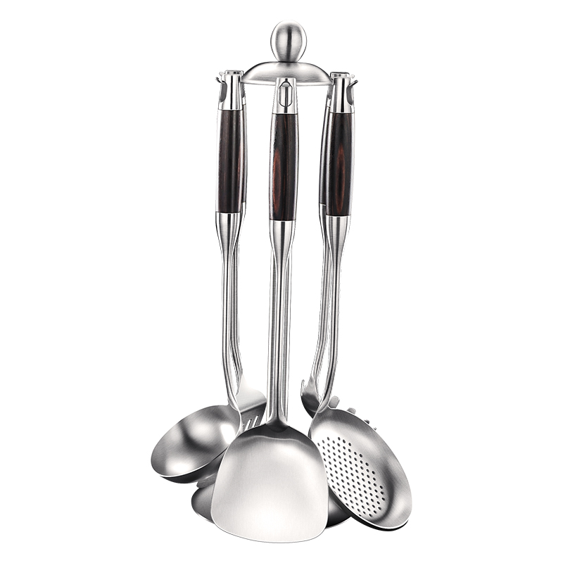 German kitchenware set 304 stainless steel cookware 6-piece set shovel spoon Full set spatula stir-fry shovel wooden handle household