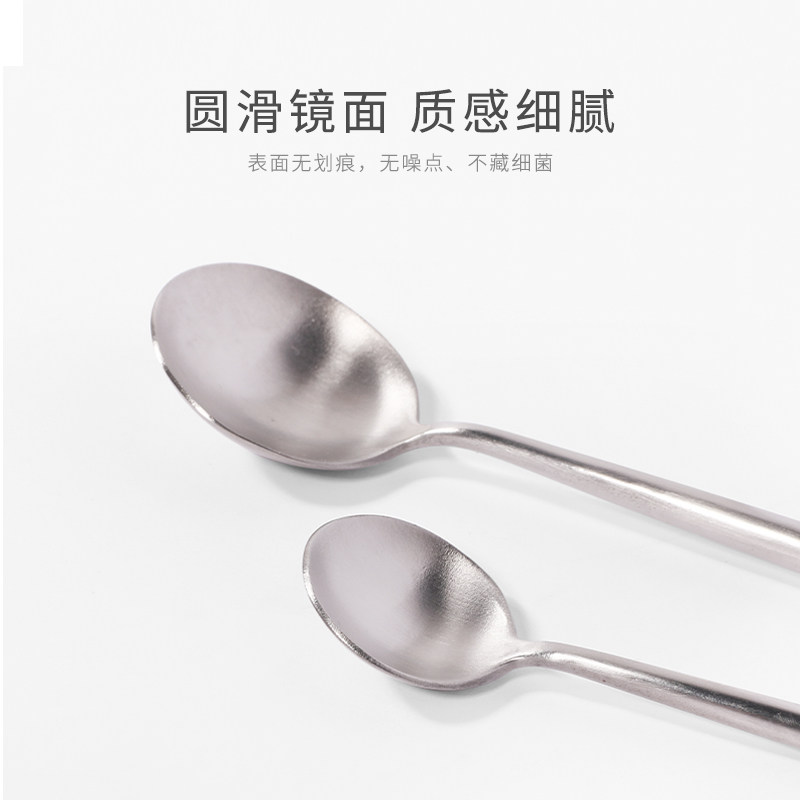 304 stainless steel spoon net red soup spoon household small iron round head long handle thickened meal spoon stirring spoon Nordic style