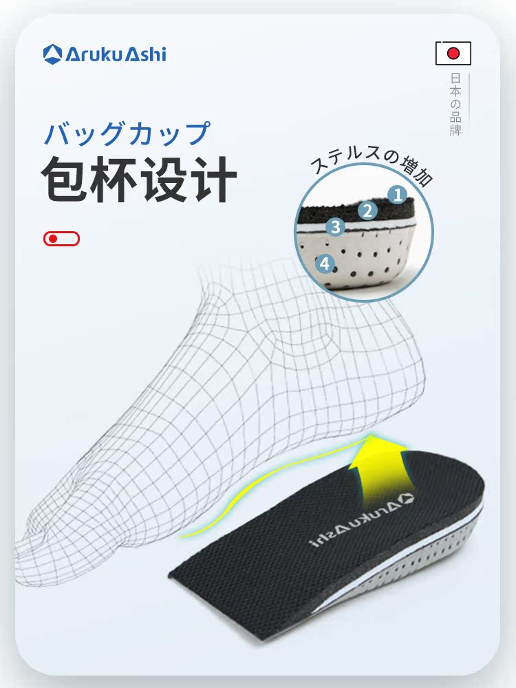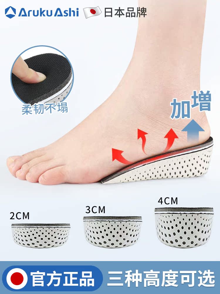Japanese invisible inner heightening insole women's soft bottom comfortable breathable not tired feet heightening artifact net red half pad men and women