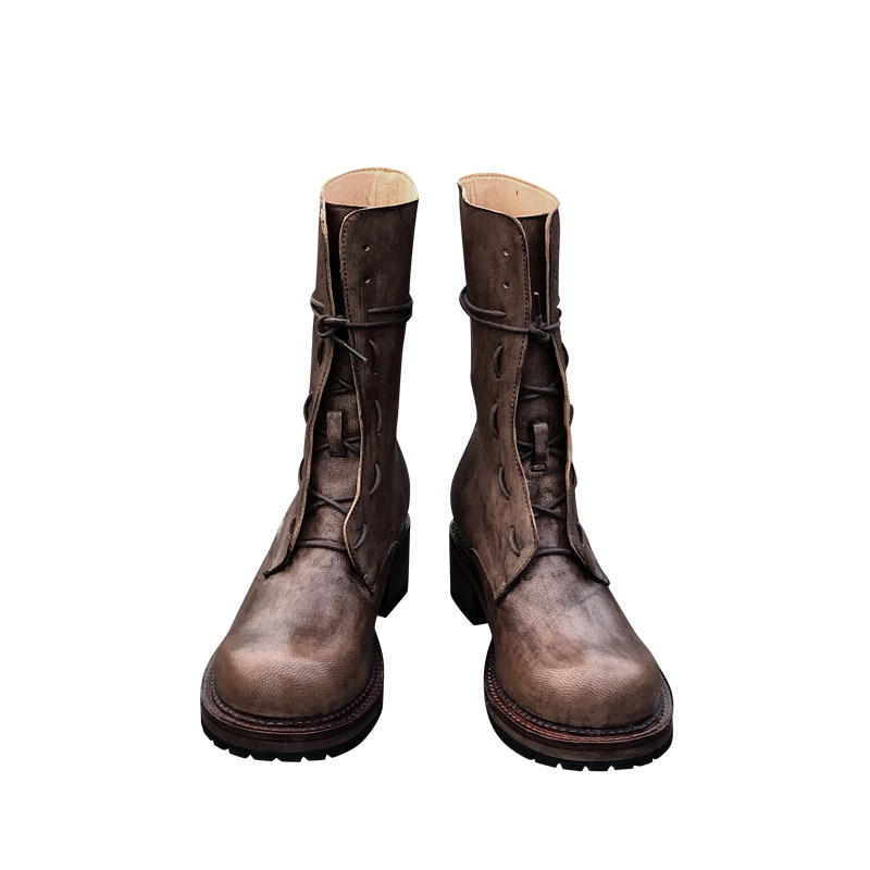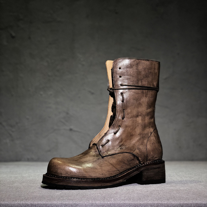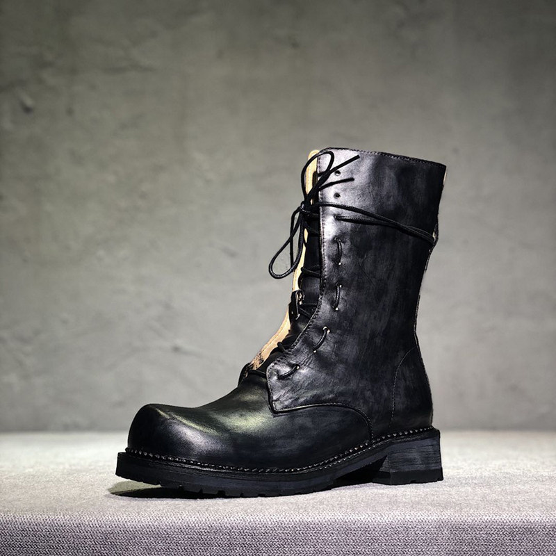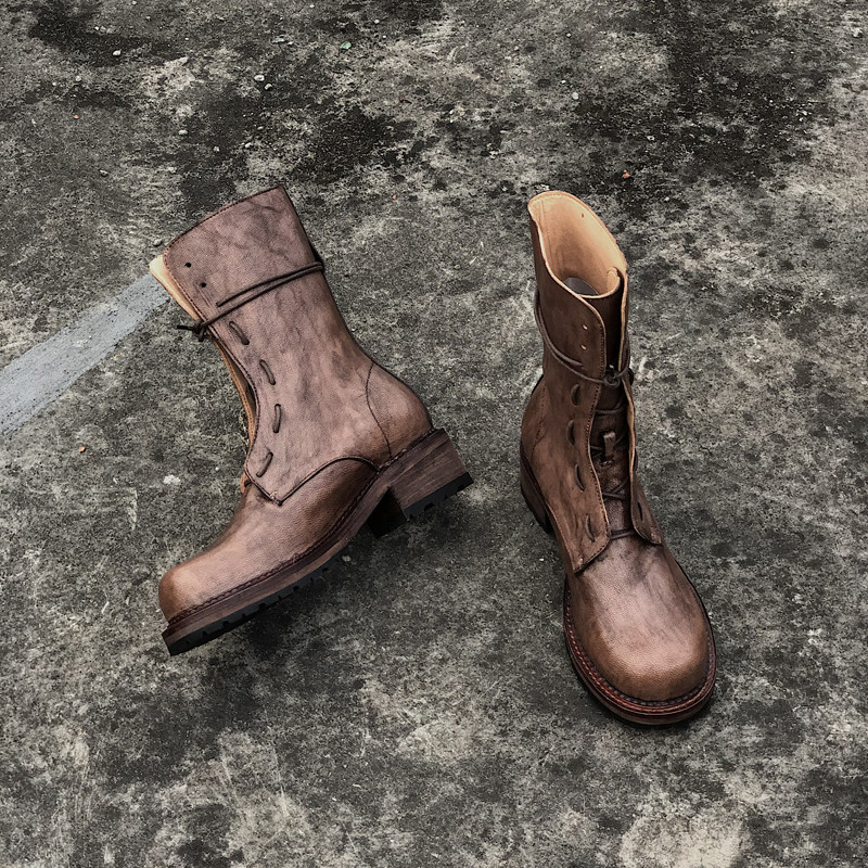 Ding Yin Studio ) The crowd original design of the cylindrical round head Martin boots retro thick knight boots hand - made women's shoes