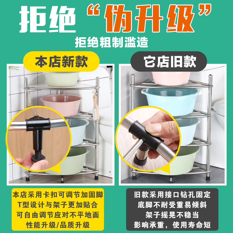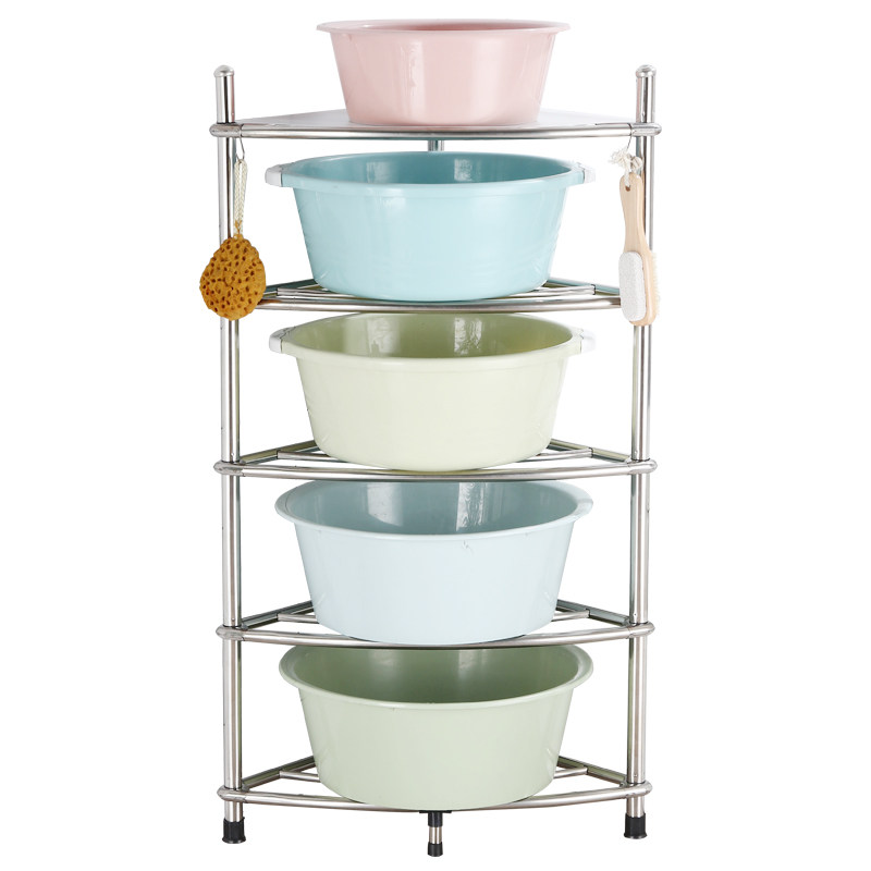 Stainless steel washbasin rack toilet floor-to-ceiling tripod toilet shelf bathroom corner storage rack kitchen