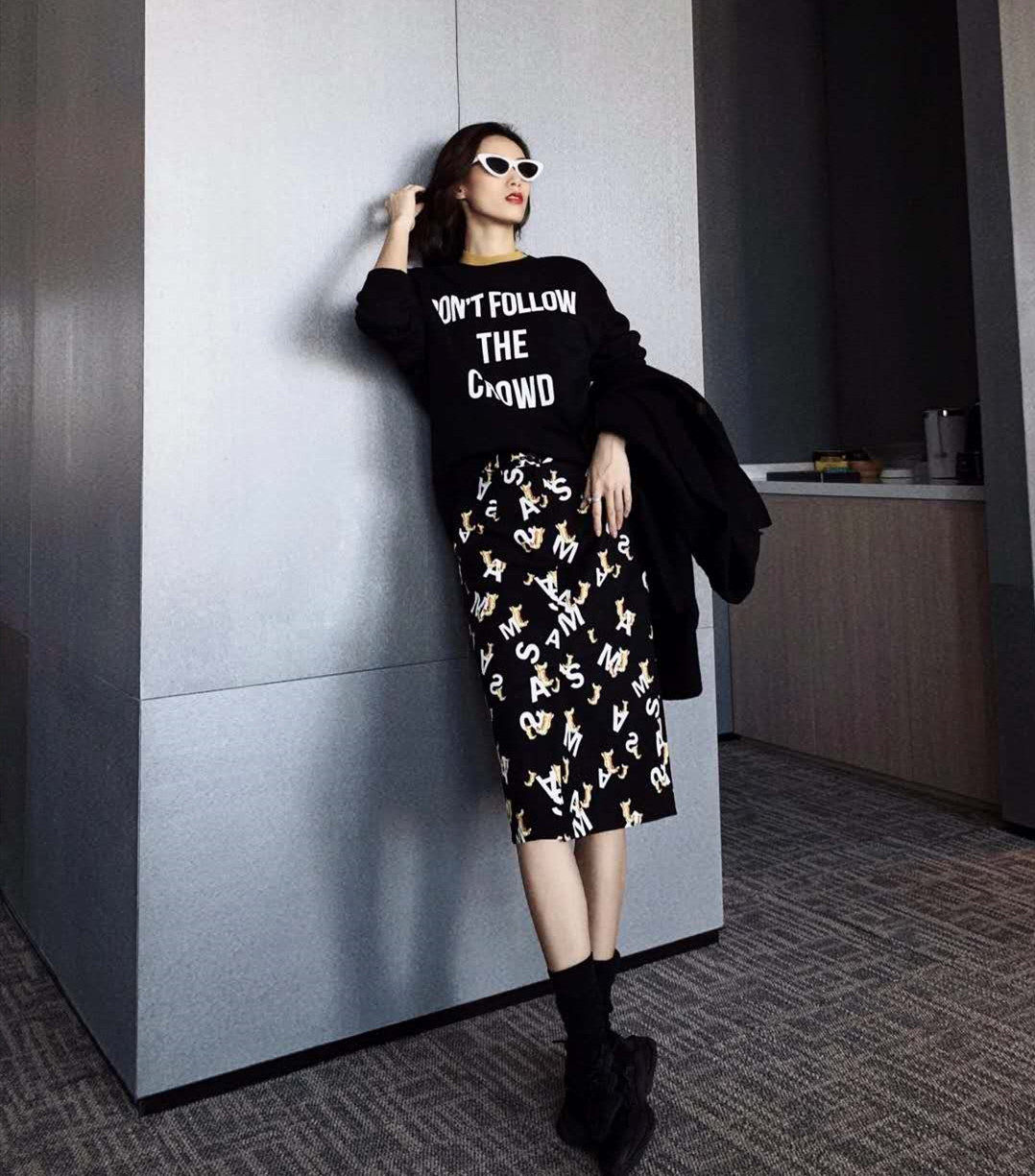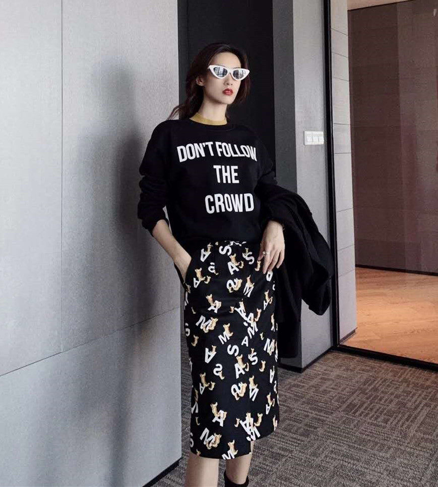 Year Amashxinte 2022 spring and summer new counter women's clothing printed letters split mid-length skirt women