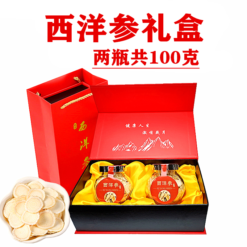 Changbai Mountain American Ginseng Slices Gift Box Authentic American Ginseng Soft Branch Slices Containing Sliced Whole Branches Soaked Ginseng Slices