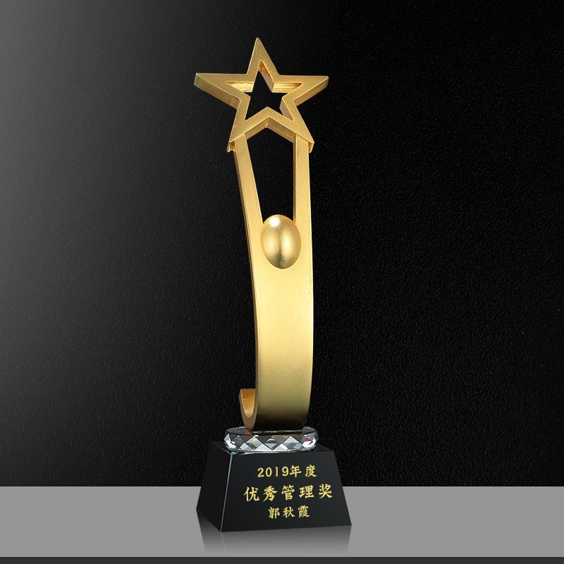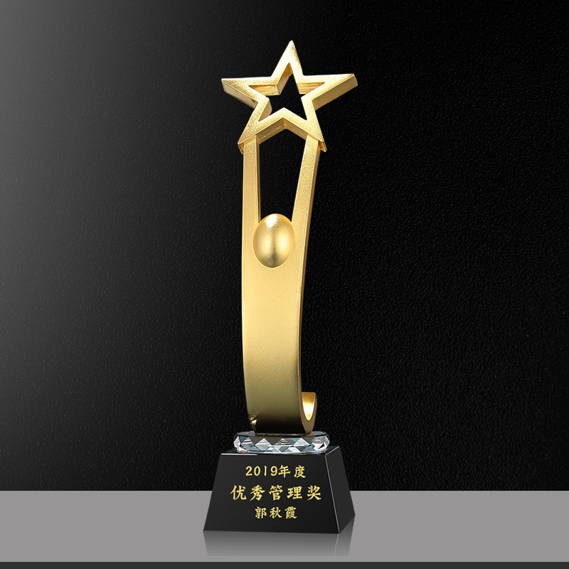 New Metal Pentagon Crystal Trophy Customized Crystal Trophy Customized for Creative Souvenirs