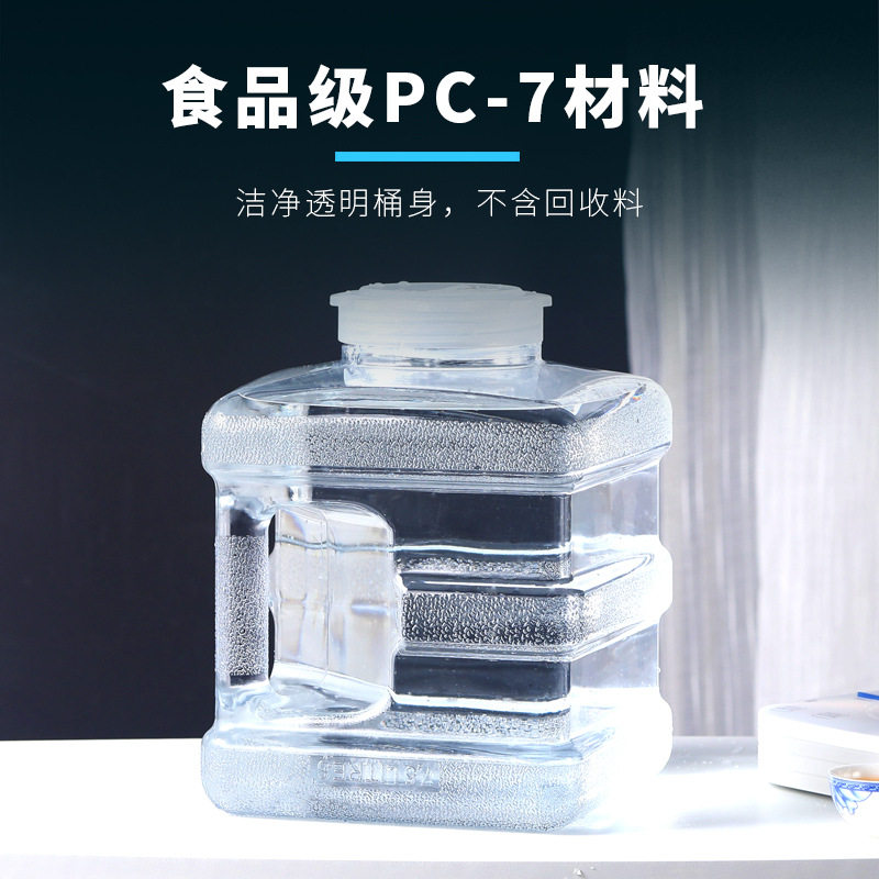 Transparent mineral water bucket Kung Fu tea ceremony tea outdoor pure square bucket PC water dispenser household food grade water storage bucket