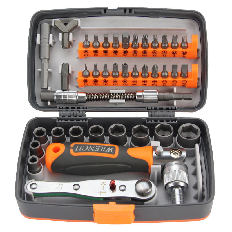 Ratchet 38 piece set (head can be rotated 180 degrees, ratchet 38 piece set 46 piece set straight handle (