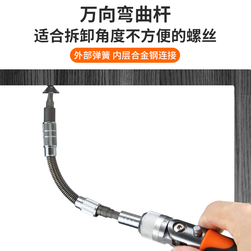 Ratchet 38-piece set (head can be rotated 180 degrees, elongated rod can be bent)