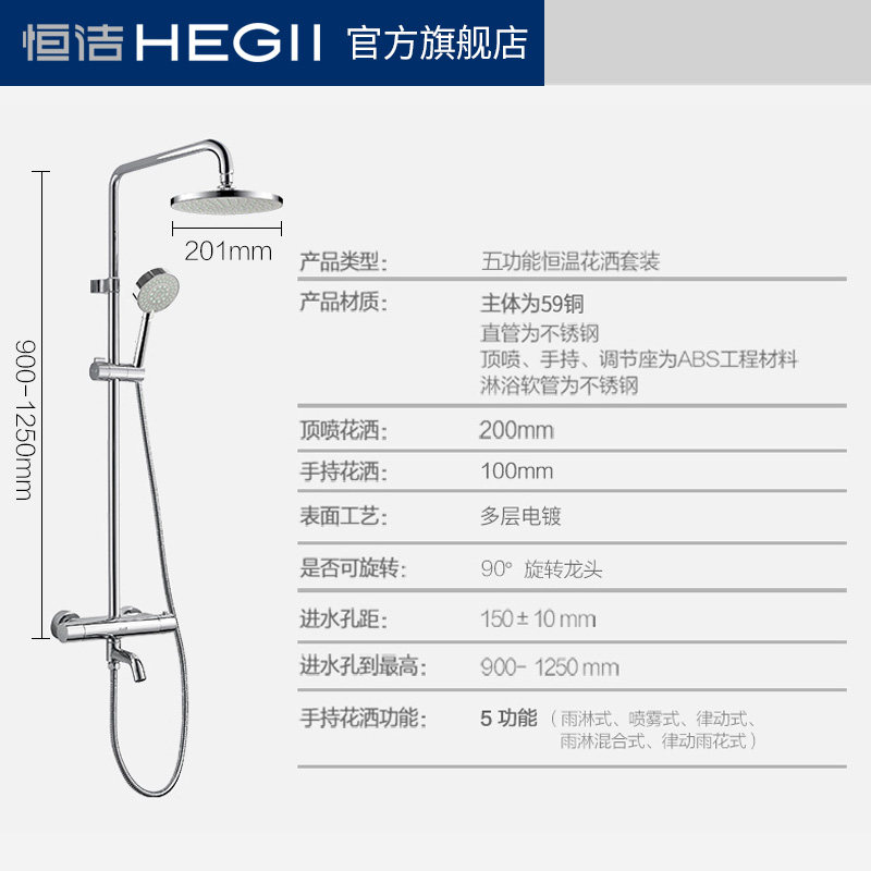 HEGII Hengjie Intelligent Thermostatic Shower Set Bathroom Shower Faucet Rain Shower Home Surface Mounted Nozzle