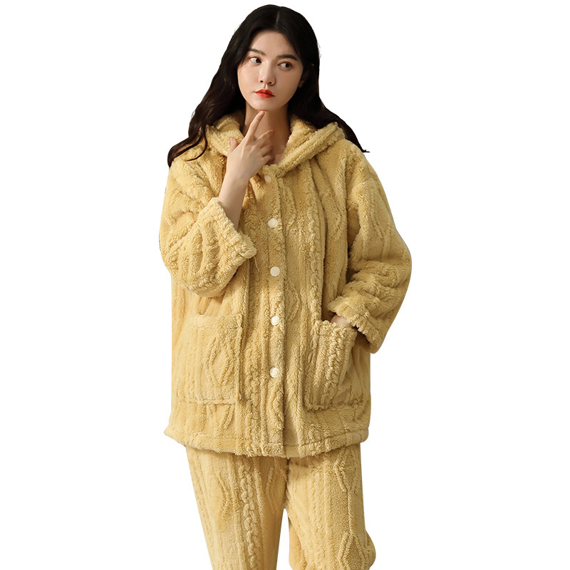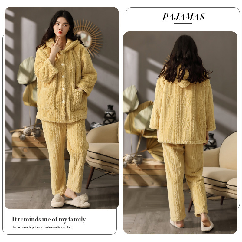Pajamas autumn and winter women's coral fleece thickened warm middle-aged mother can wear flannel winter home service suit