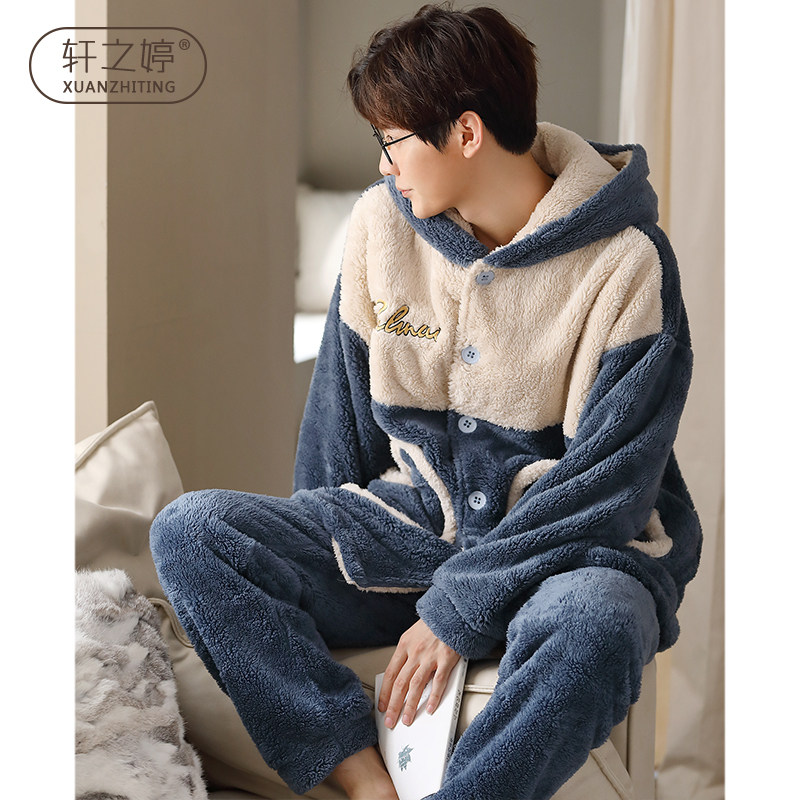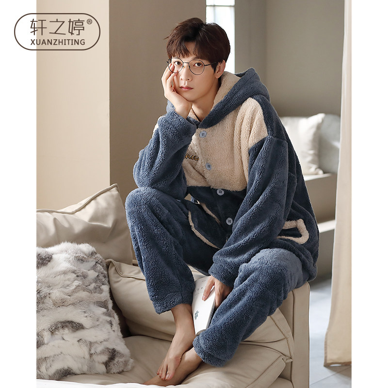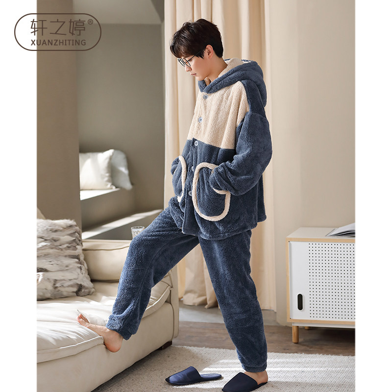 Pajamas men's autumn and winter coral velvet thickened and velvet youth can wear casual flannel home clothes winter suit